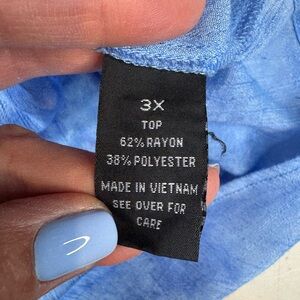 AGB Woman 3X Blue Tie Dye Boho Peasant Top Plus Tunic Blouse Crochet Trim D226