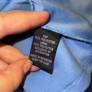 AGB Woman Periwinkle Blue Boxy flowy Blouse, sheer around the neck, embroidered on the rest of the top.