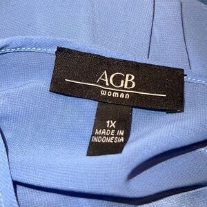 AGB Woman Periwinkle Blue Box Embroidered Blouse with Sheer Neckline Size 1X