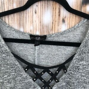 AGB Women V-Neck Blouse Top Black Lace Studded Detail Plus Size Gray 1X