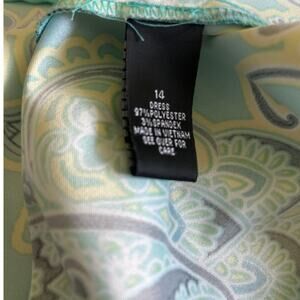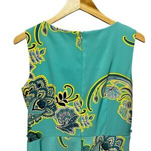 AGB Womens Dress 14 Teal Floral Paisley Fit Flare Mid Length Boho Retro Mod