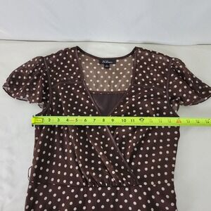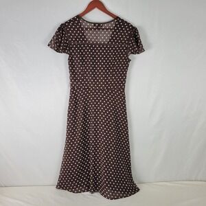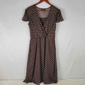 AGB Womens Dress 8 Brown Polka Dot Sundress Short Cap Sleeve Lined Surplice Neck