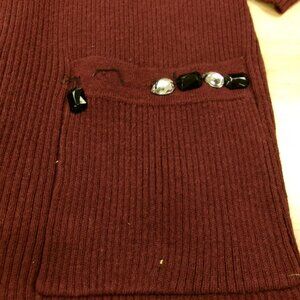 For your consideration is a women's sweater (looks like a tunic) made by AGB. This sweater is in good condition overall. No rips or tears to be found, but there are some minor stains that I've shown in the photos. Nothing too severe or distracting. This sweater has pockets with embellishments on them, but some are loose (see photos). Great find for casual wear or repurposing into something completely new! Don't miss out.