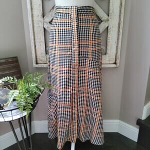 Geometric print hidden button front ruffle hem maxi skirt by AGB in a size 10 petite.