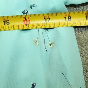 AGB Women's S Light Aqua Floral Patterned Scalloped V-Neck Blouse