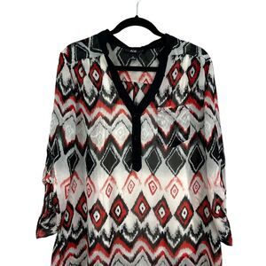 AGB Womens Tunic Top Attached Camisole Tank Top Rolled Tab Sleeves Red Black XL