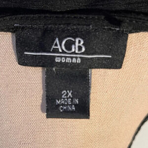 AGB woman 2X black long sleeve top with leopard print design on sleeves.