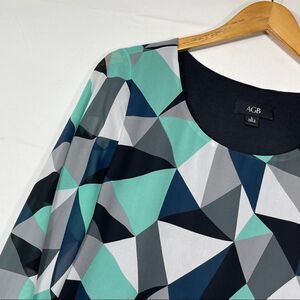 AGB Blue and White 3/4 Sleeve Scooped Neck Blouse