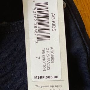 My Son just out grew before he could wear. This is for a brand new with tag, AG-ED Denim, Kids size 7, The Kingston Slim Skinny Blue Jean. AG-ED Denim is an ode to vintage denim, AG-ed jeans combine artisan distressing with modern fabrics and expert fits. Each pair is hand-finished to achieve a one-of-a-kind look, capturing the naturally age characteristics of denim.