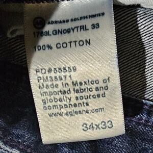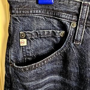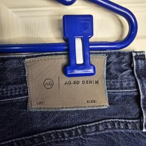 AG-ED Denim Tellis Modern Slim Jeans – Dark Wash, Straight Leg, Men's 34x31. Layflat measurements: waist 18; inner seam 31; draw 10.5; leg opening 7. These AG-ED Denim Tellis Modern Slim Jeans feature a dark wash with a straight-leg cut, offering a sleek, modern fit. Crafted from premium stretch denim, they provide comfort and durability, making them perfect for casual wear or dressing up. Designed with high-quality craftsmanship, these jeans blend style and versatility effortlessly.