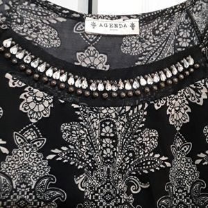 AGENDA SILKY BLOUSE WITH RHINESTONE AROUND NEXT. SO CLASSY AND SHEEK. EXCELLENT CONDITION