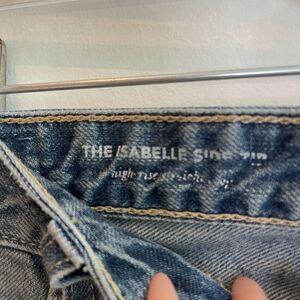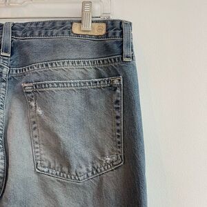 AG Jeans Crossover High Rise Straight Leg Side Zipper 31 Distressed Denim Part of the AG-ED collection - Small Ink Mark