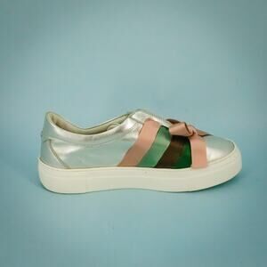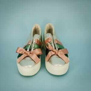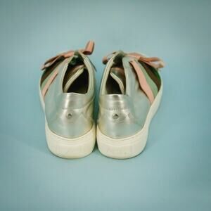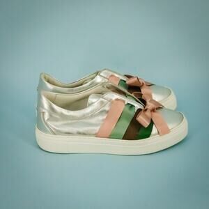 AGL Attilio Giusti Leombruni 41 Size 11 US Silver Pink Green Metallic Bow Detail Slip On Low Top Platform Leather Sneakers Shoes - D925123