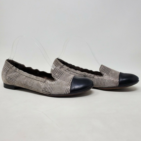 AGL ATTILIO GIUSTI LEOMBRUNI LEATHER CAP TOE HOUNDSTOOTH BALLET FLATS 8 38.