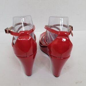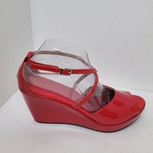 AGL ATTILIO GIUSTI LEOMBRUNI WEDGES SANDALS RED PATENT LEATHER SIZE 40