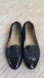 #high end Elegant denim loafer flats featuring stylish navy patent accents. Perfect for any occasion.