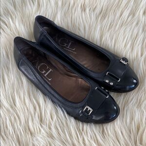 AGL Attilio Giusti Leombruni Ballet Flats Black Leather Patent Preppy | 8.5