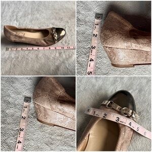 AGL Attilio Giusti Leombruni Jody Cap Toe Buckle Wedge Ballet Flat Patent Gold
