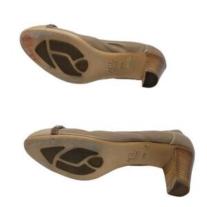 AGL Attilio Giusti Leombruni Leather Embossed Cap Toe Pump Heels 39.5 Tan Italy