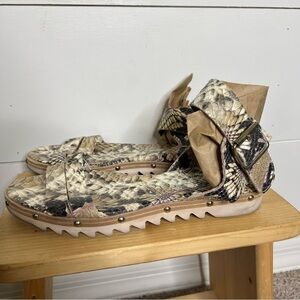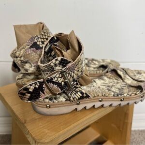 AGL Attilio Giusti Leombruni Leather Snakeskin Ankle Strap Sandals