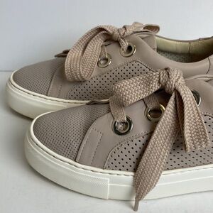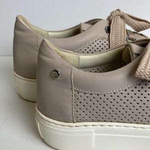 AGL Attilio Giusti Leombruni Perforated Platform Talc Platform Leather Sneaker Size 39 US Women 9