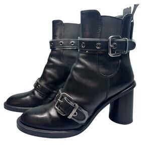 AGL Attilio Giusti Leombruni Womens Boots Black Leather Buckle 38.5 US 7.5 Moto