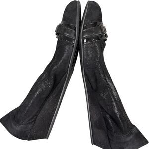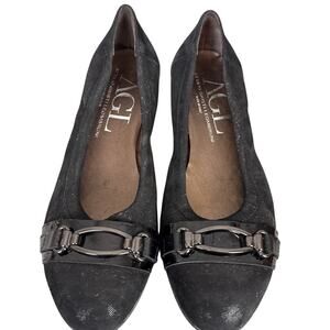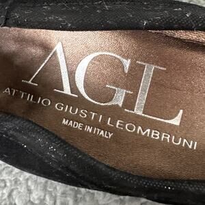 AGL Ballet Flat Wedge Oval Toe Attilio Giusti Leombruni Black Leather 39 Luxury