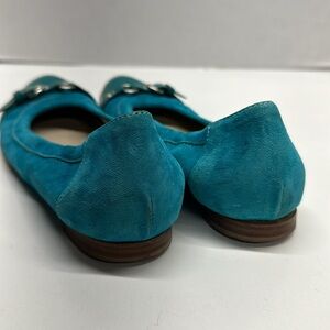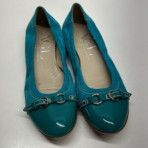 AGL Ballet Flats Shoes Cap Top Buckle Suede Leather Aqua Blue Green Size 38 US 8