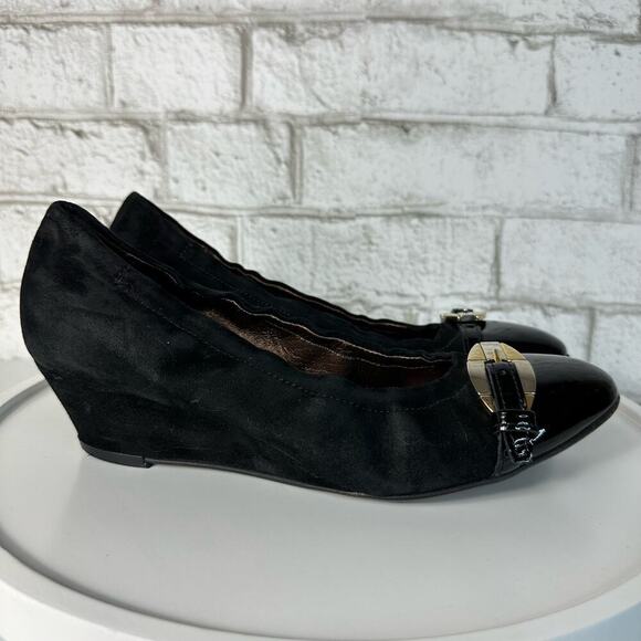 AGL Black Heels Attilio Giusti Leombruni Suede Leather Wedge Kitten Buckle 37 7