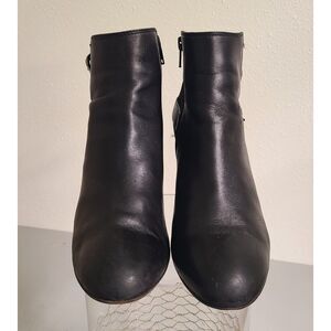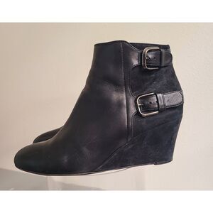 AGL Black Leather Ankle Wedge Booties Double Buckle US 9/9.5