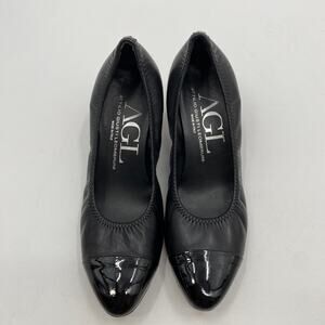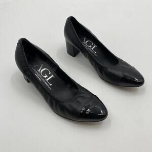 AGL Black leather round toe scrunch block heels