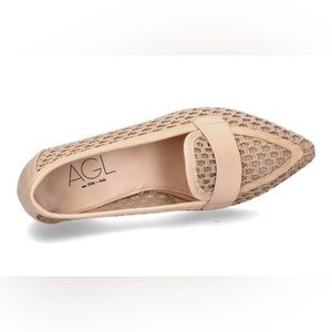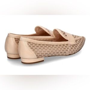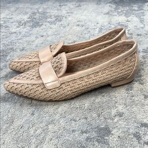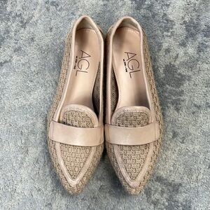 AGL Blanca Plots Moc Pointed Toe Flat Loafer Woven Leather Trim Beige Sz 36.5