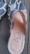 AGL Blue and Cream Snake Print Mules Sandals Heels