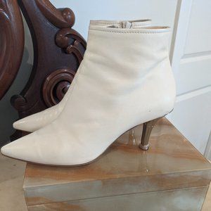 A mirror-metallic kitten heel adds just-right height and a bit of attitude to a pointy-toe Italian bootie fitted with a comfortably cushioned footbed. Style Name: Agl Summer Bootie (Women). Worn twice.