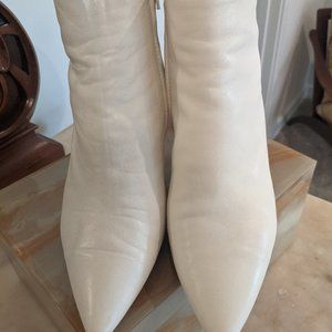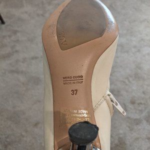 AGL Bootie Off-White Calf Leather with Metallic Kitten Heel