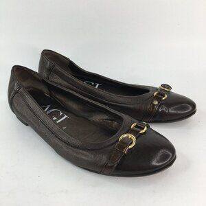 AGL Brown Cap Toe Leather Flats 558034 Size 37.5