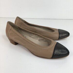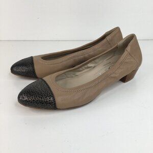 AGL Tan Leather Low Heels With Animal Print Cap toe Size 37