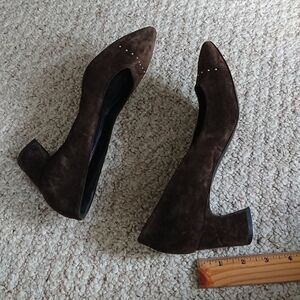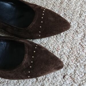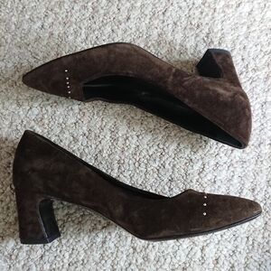 AGL Brown Suede leather Pumps with decorative gold studs size 37.5