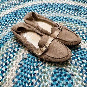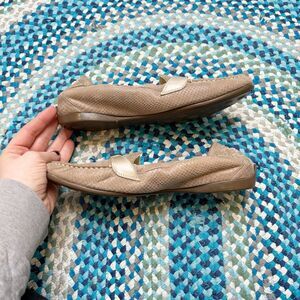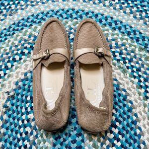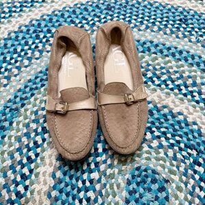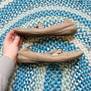 Please see all photos for details. These are in great shape. The left shoe does have a spot on the front of it. Please see last photo.