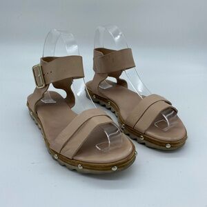 AGL Gladiator Studded Leather Ankle Strap Sandals Shoes Tan Brown Womens 36 6