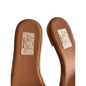 AGL LEATHER GOLD SLIDES SIZE 36.5/US 6 RETAILS $182