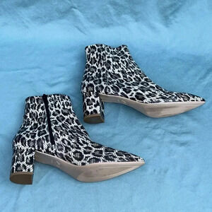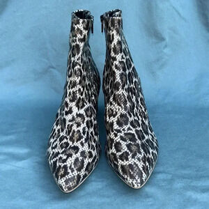 A vivacious leopard print elevates a snake-embossed leather boot fashioned with a chic pointed toe and wrapped block heel. Pointed toe Leopard print Snake-embossed leather upper Side zip closure Lightly cushioned footbed Block heel Leather upper and lining/rubber sole Made in Italy
