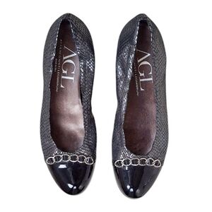 AGL Metallic Leather Ballet Flats Italy Business Casual Professional EU 41