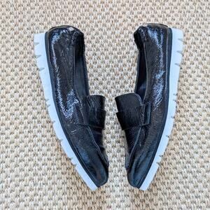 This is a pair of AGL Micro loafers in size 40.5/US 10.5. Never worn. Black glossy leather with a pointed toe. Retail for $400+.