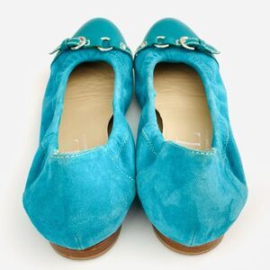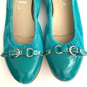 AGL Monica Teal Patent Leather & Velvet Teal Ballet Flats sz 10 Preppy Office