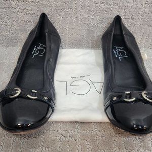 AGL Monika Womens Size 38.5 Black Cap Toe Leather Comfort Slip On Ballet Flat