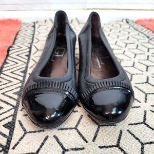 AGL PLEATED PATENT LEATHER BLACK KITTEN HEELS, SZ 7.5