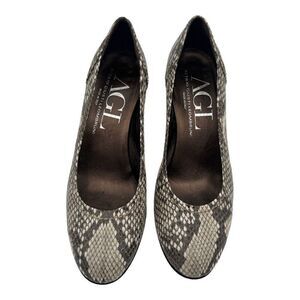 Step into a world of timeless elegance and unparalleled comfort with AGL Pumps Shoes Women's 39.5 Multi-Color Almond Toe Snakeskin Embossed Leather. These classic pumps effortlessly combine style and functionality to create a shoe that you'll love wearing again and again. The ultra-lightweight construction ensures that your feet won't tire even during extended wear. The eye-catching snakeskin-embossed leather adds a fashionable twist, while the almond toe design provides a sophisticated touch. With AGL pumps, you can effortlessly transition from a day at the office to an evening soirée, knowing that you're always dressed to impress!