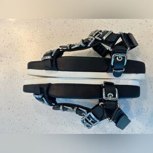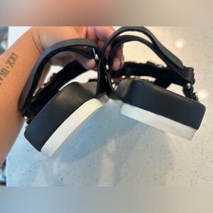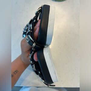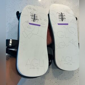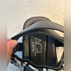 AGL Sandals Black Leather Flatform Buckle Slingback Adjustable Size 37