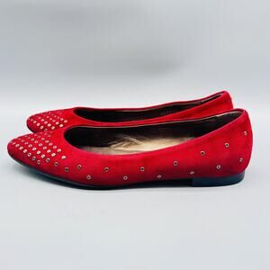AGL Shoes Women 9 Red Suede Metallic Stud Slip On Ballet Flats Comfort Round Toe